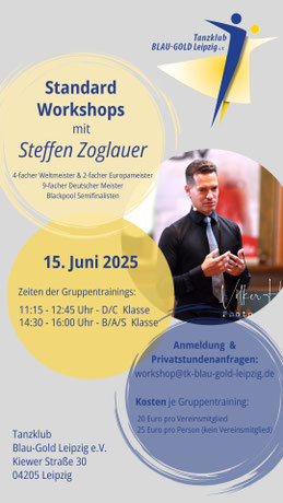 Am 09.03.2025 veranstalten wir einen Standard-Workshop mit DTV-Verbandstrainer Steffen Zoglauer. Wir laden Euch recht herzlich dazu ein.