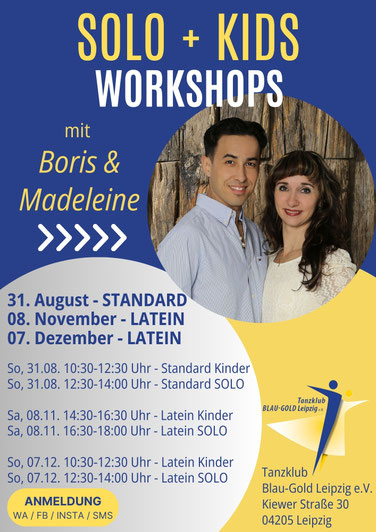 Wir freuen uns wieder einen SOLO Workshop mit Madeleine in unserem Verein anbieten zu können - merkt euch hierfür den Sonntag zum Ende der Osterferien vor. Direkt im Anschluss gibt es einen weiteren Workshop für die Turniergruppe der Kids. Bitte bei Madeleine anmelden !!