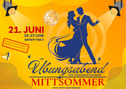 Es wurde überlegt die Tradition der Übungsabende wieder aufleben zu lassen. Am Samstag, den 10. Mai geht es los !!! Sollte er gut anlaufen, könnten weitere folgen. Lasst uns tanzen bis in die Nacht!